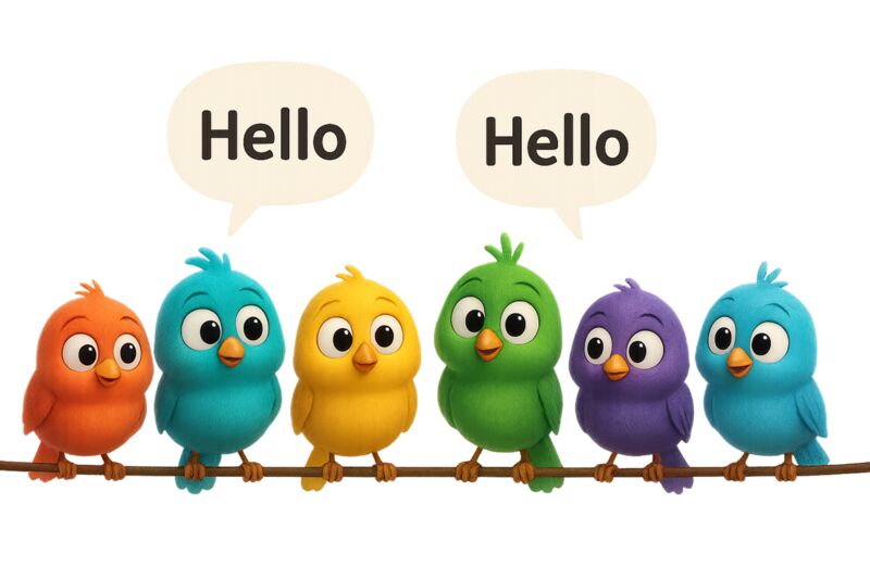 Colourful birds on a wire having a chat